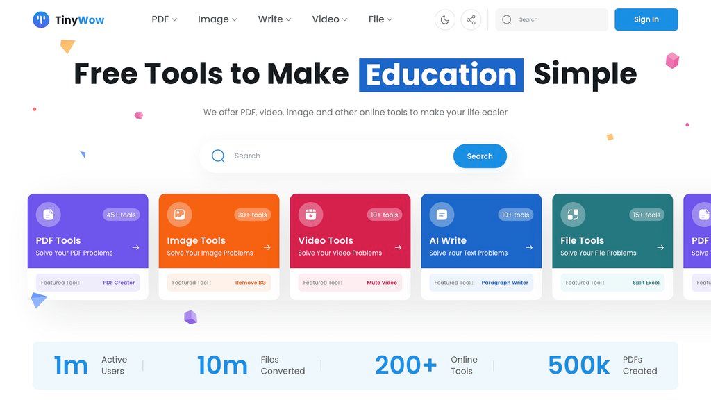 TinyWow — это браузерная платформа, объединяющая свыше 250 инструментов для упрощения различных цифровых задач. Вам не потребуется устанавливать дополнительное ПО или регистрироваться. Все базовые функции доступны бесплатно, а расширенные возможности предоставляются по подписке. Сервис автоматически удаляет загруженные файлы после обработки, что гарантирует конфиденциальность ваших данных. Платформа решает проблему необходимости использования множества разрозненных программ для работы с документами, изображениями, видео и текстом. Вместо этого вы получаете единый удобный интерфейс, где можно быстро преобразовать PDF в Word, удалить фон у фото, сжать видео или сгенерировать текст с помощью ИИ. Это экономит время и упрощает рабочий процесс для всех, кто регулярно сталкивается с цифровыми задачами.