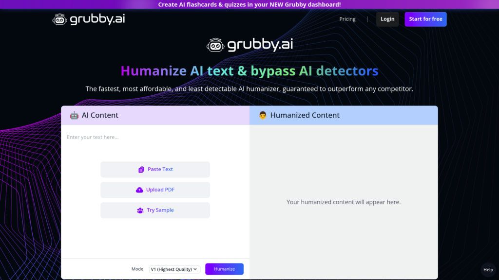 Grubby AI — это инструмент, который использует продвинутые алгоритмы для переработки контента, созданного искусственным интеллектом. Он анализирует структуру предложений, словарный запас и стилистические особенности ИИ-текста, чтобы придать ему естественность и аутентичность человеческой речи. В результате получается текст, который не только звучит органично, но и успешно проходит проверку на детекторах ИИ, таких как GPTZero, Turnitin и Originality.ai, устраняя следы машинного генерирования. Основная задача Grubby AI — помочь пользователям избежать проблем, связанных с использованием ИИ-контента: от снижения его уникальности до потенциальных штрафов от поисковых систем или учебных заведений. Инструмент решает боль создания контента, который должен соответствовать строгим требованиям к оригинальности и естественности, но при этом создается с помощью ИИ. Это особенно актуально для студентов, которым необходимо сдавать оригинальные работы, и для маркетологов, стремящихся к органичному продвижению.