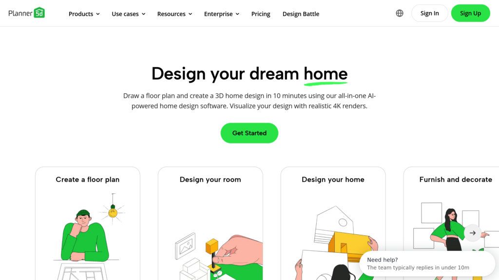 Planner 5D — это платформа для создания детализированных 2D и 3D планов помещений и дизайна интерьеров, не требующая профессиональных архитектурных навыков. Используя ИИ, инструмент автоматически преобразует фотографии или наброски комнат в редактируемые 3D-планы, экономя время на начальном этапе проектирования. Платформа решает задачу быстрого и точного создания визуализаций для личного использования или профессиональной деятельности. Она устраняет необходимость в сложных программах и дорогостоящих услугах дизайнеров, позволяя любому пользователю воплотить свои идеи в жизнь, от расстановки мебели до генерации фотореалистичных рендеров.