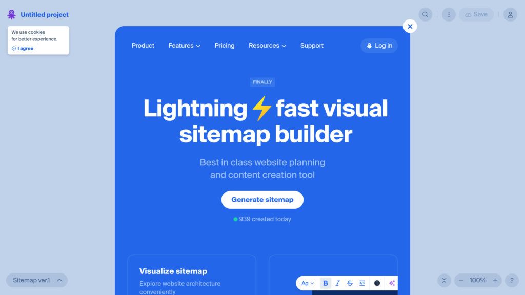 Визуализируйте и планируйте структуру сайта с помощью ИИ. Создавайте, организуйте и делитесь интерактивными картами для веб-разработки и SEO.