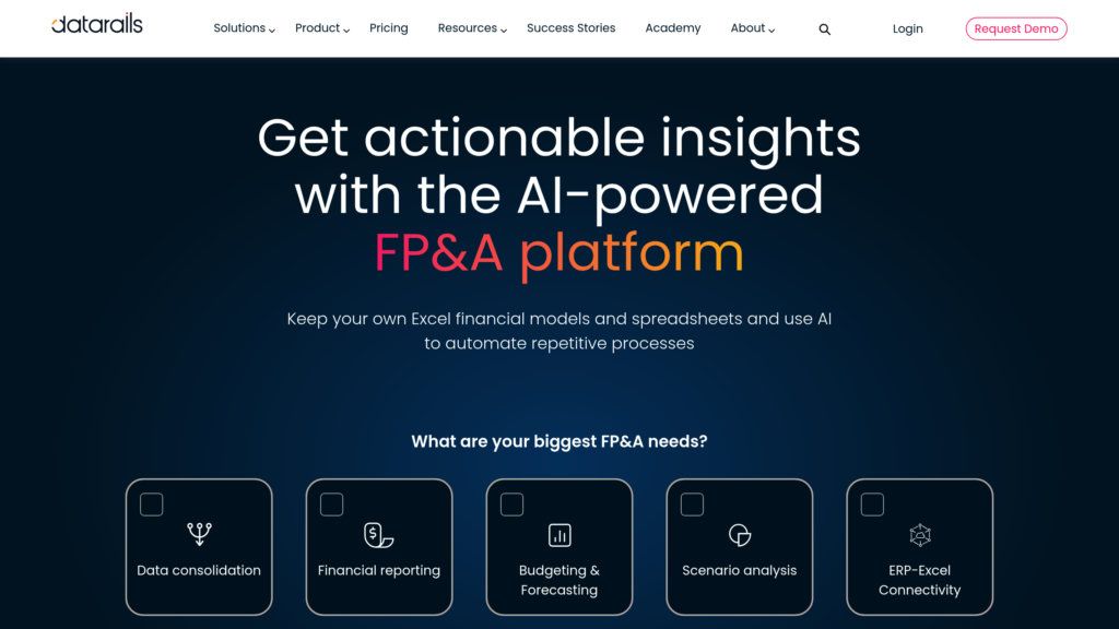 Datarails — ПО для фин. планирования и анализа, интегрируемое с Excel. Автоматизирует сбор данных, отчетность и прогнозирование для финансовых команд.