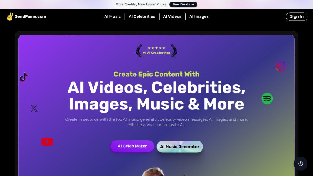 SendFame — это платформа, которая использует AI для генерации персонализированных видеосообщений с голосами и внешностью известных личностей. Вы вводите текст, а AI создает реалистичное видео, синтезируя речь и мимику выбранной вами звезды. Также платформа позволяет создавать оригинальные музыкальные композиции, включая тексты, вокал, биты и даже музыкальные клипы. Платформа решает задачу быстрого и легкого создания уникального видео- и аудиоконтента для развлекательных целей, пародий или привлечения внимания в социальных сетях. Вместо долгих съемок и студийной работы, вы получаете готовый продукт за считанные минуты, используя готовые AI-модели голосов и внешности знаменитостей.