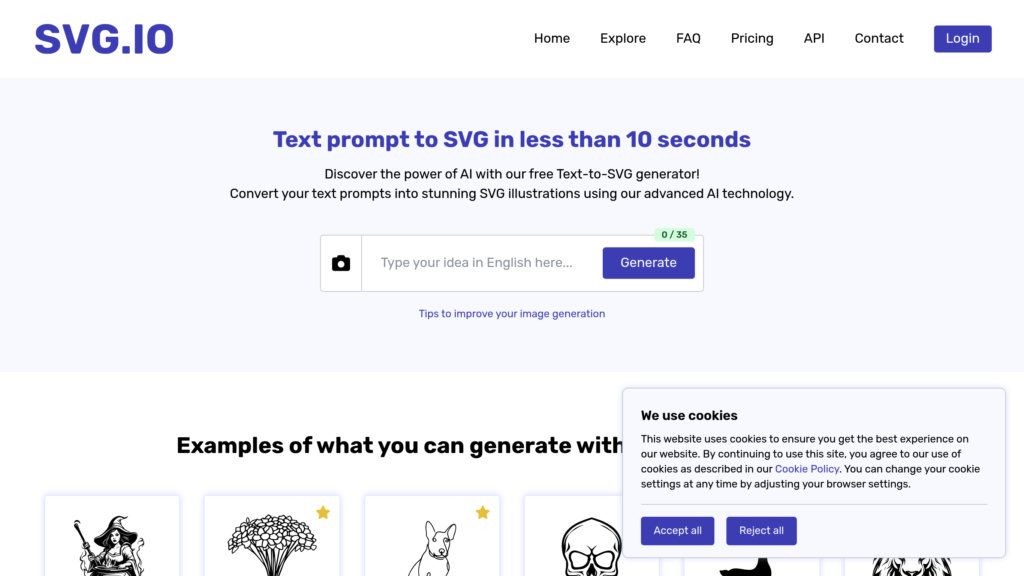 Создавайте масштабируемые векторные иллюстрации (SVG) из текста или изображений с помощью ИИ. Поддержка множества стилей, коммерческая лицензия.