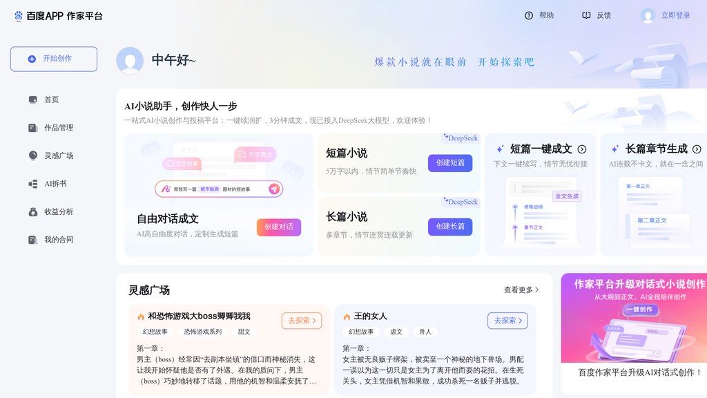 Платформа Baidu Writer с ИИ для авторов. Помощь в сюжете, продолжении текста, редактуре и продвижении контента.