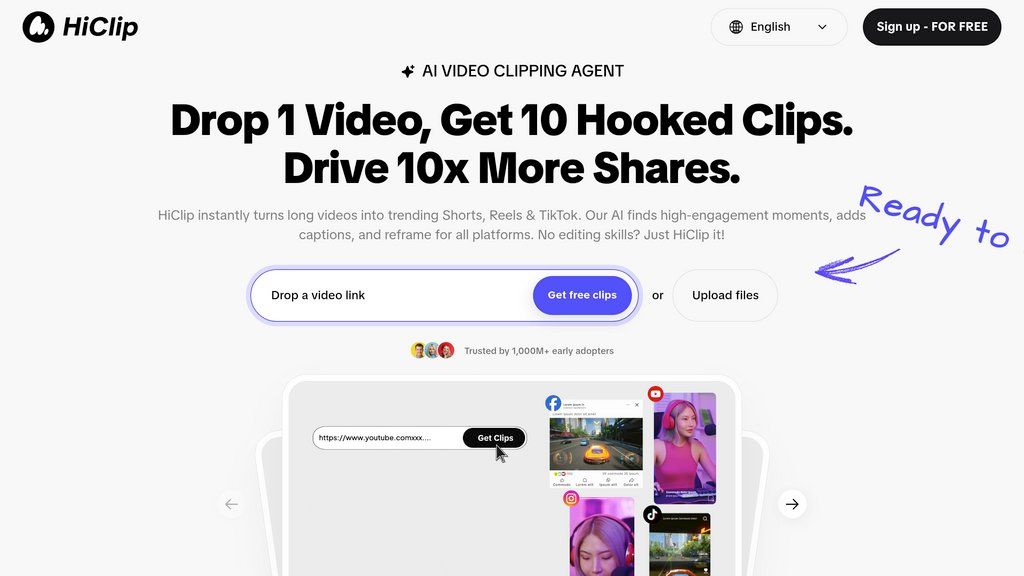 HiClip — это платформа, использующая продвинутый AI для автоматического создания коротких, вовлекающих видео из длинных записей. В основе лежит технология Context-Aware Analysis™, которая анализирует визуальные, звуковые и смысловые аспекты контента, чтобы точно определить наиболее интересные и потенциально вирусные фрагменты. Платформа решает проблему трудоемкости ручного монтажа и адаптации контента под разные социальные сети. Вместо часов работы над каждым видео, HiClip позволяет получать готовые к публикации шортсы для TikTok, Instagram Reels, YouTube Shorts и других платформ за считанные минуты, освобождая время для создания нового контента и взаимодействия с аудиторией.
