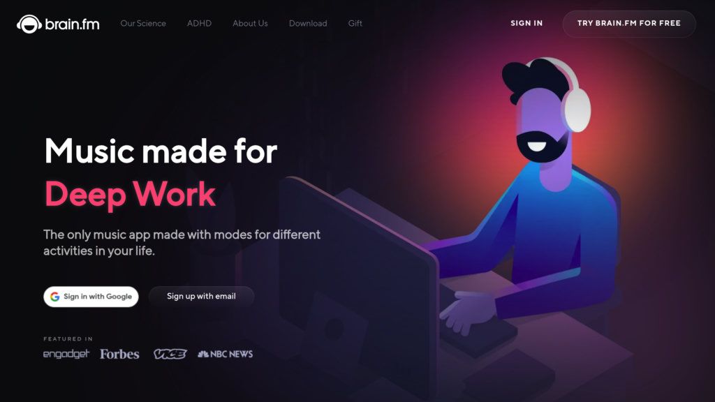 Предлагает специализированные аудио-треки для Фокуса, Расслабления, Сна и Медитации.