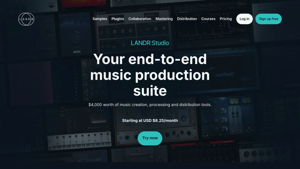 LANDR — платформа для создания и дистрибуции музыки с AI-мастерингом, доступом к сэмплам и плагинам, а также инструментами для совместной работы.