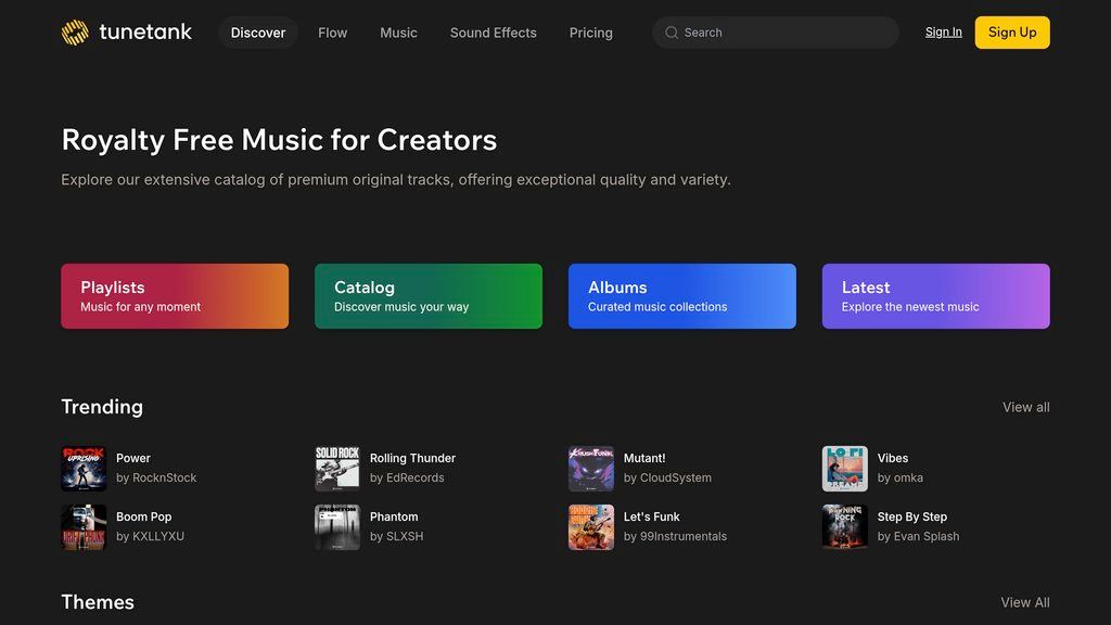 Tunetank — это платформа, предоставляющая доступ к обширной библиотеке из более чем 10 000 эксклюзивных треков и звуковых эффектов, полностью свободных от роялти. Инструмент разработан для создателей контента, видеопродюсеров, подкастеров и бизнесов, которым требуется качественное аудио для своих проектов без сложностей с лицензированием и управлением авторскими правами. Гибкая система лицензирования позволяет использовать музыку как в личных, так и в коммерческих целях, обеспечивая возможность полной монетизации контента на YouTube, в социальных сетях и других платформах. Основная проблема, которую решает Tunetank, — это страх перед блокировками и претензиями по авторским правам, которые могут привести к потере дохода или удалению контента. Платформа устраняет эту головную боль благодаря встроенному инструменту для удаления претензий по авторским правам. Если на ваше видео на YouTube поступает жалоба, вы можете отправить ссылку на него в Tunetank, и система автоматически займется решением проблемы, возвращая вам полные права на монетизацию. Кроме того, Tunetank предлагает высококачественные аудио-ассеты, включая STEMS-файлы для более продвинутого редактирования, и интуитивно понятный интерфейс для быстрого поиска нужной музыки по жанрам, настроениям и темам.