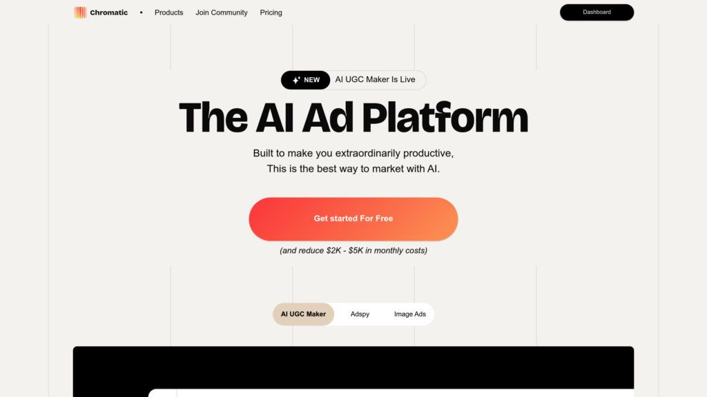 Chromatic Labs — это ИИ-платформа, автоматизирующая создание рекламных видео и изображений, а также предоставляющая аналитику кампаний. Алгоритмы ИИ трансформируют ваши сырые изображения и данные в профессиональные рекламные креативы, включая UGC-стиль видео, всего за ~60 секунд. Это значительно сокращает время производства, которое раньше измерялось неделями. Платформа решает головную боль маркетологов, агентств и фрилансеров, связанную с высокими затратами и длительностью создания рекламных материалов. Объединяя в себе функции генерации контента, тестирования вариаций, анализа конкурентов и производительности кампаний, Chromatic Labs позволяет получать действенные инсайты и оптимизировать бюджет, снижая расходы на 90% по сравнению с традиционными решениями.