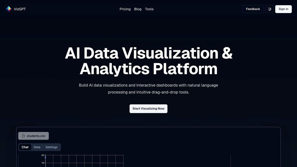 vizGPT трансформирует работу с данными, позволяя получать визуализации, аналитические сводки и интерактивные дашборды, просто общаясь с системой на естественном языке. Платформа понимает контекст ваших запросов и сохраняет историю диалога, что позволяет вести непрерывный аналитический анализ без необходимости писать код. Встроенные инструменты для трансформации данных (очистка, профилирование, изменение структуры) интегрированы в удобные смарт-таблицы. Основная боль, которую решает vizGPT, — это сложность и трудоемкость традиционной аналитики данных. Пользователям больше не нужно осваивать сложный синтаксис SQL, Python или специализированные BI-инструменты. vizGPT делает анализ данных доступным для широкого круга специалистов, позволяя им сосредоточиться на получении инсайтов, а не на технических аспектах подготовки и визуализации.