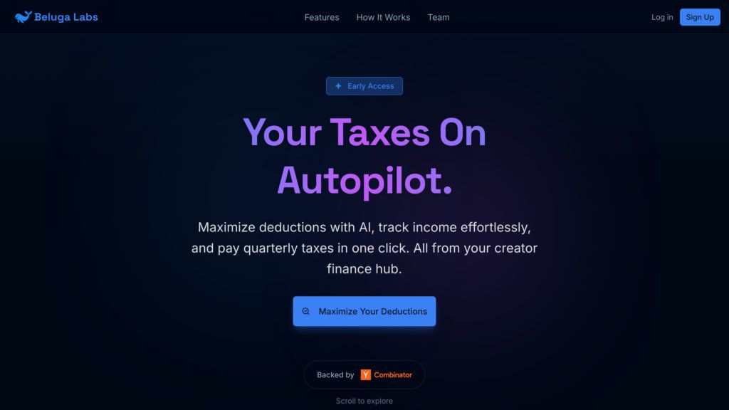 Beluga Labs — это комплексный центр управления финансами, разработанный специально для создателей контента и фрилансеров. Платформа автоматически отслеживает множественные источники доходов (например, YouTube, Patreon, банковские счета), категоризирует расходы и предоставляет расчеты налогов в режиме реального времени. Интеграция с основными платформами и банками позволяет пользователям максимально использовать налоговые вычеты и эффективно уплачивать квартальные налоги. Главная задача Beluga Labs — избавить фрилансеров от рутинной работы с финансами. Инструмент снижает административные издержки и минимизирует риски, связанные с налоговой отчетностью, позволяя сосредоточиться на творческой или профессиональной деятельности.
