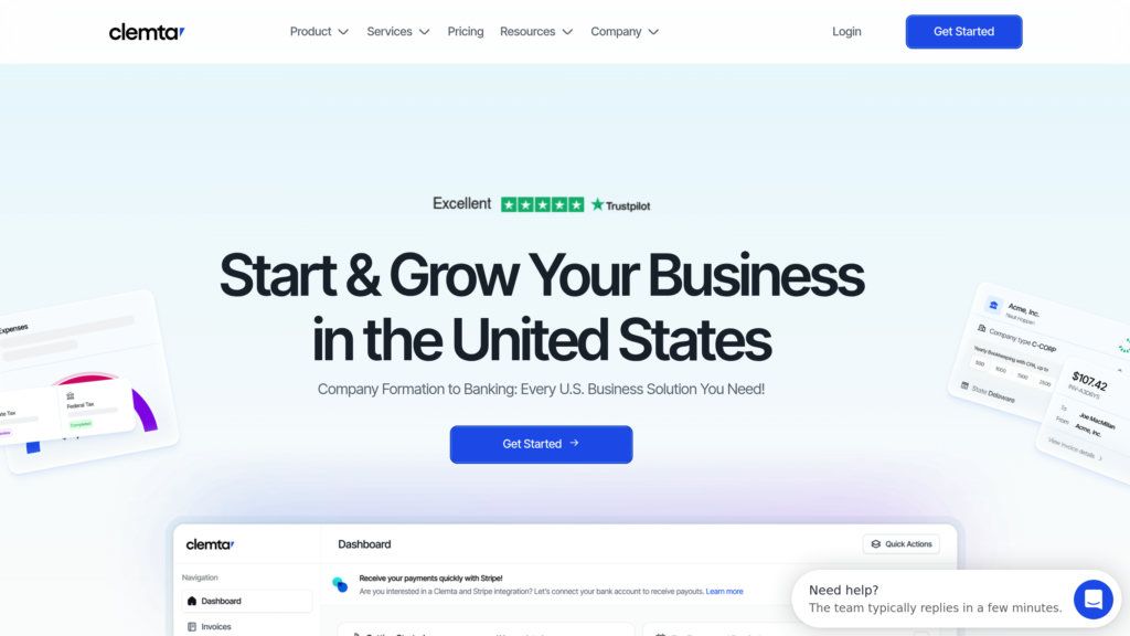 Clemta — SaaS-платформа для международных предпринимателей. Автоматизирует регистрацию бизнеса, бухгалтерию, налоги и комплаенс в США.