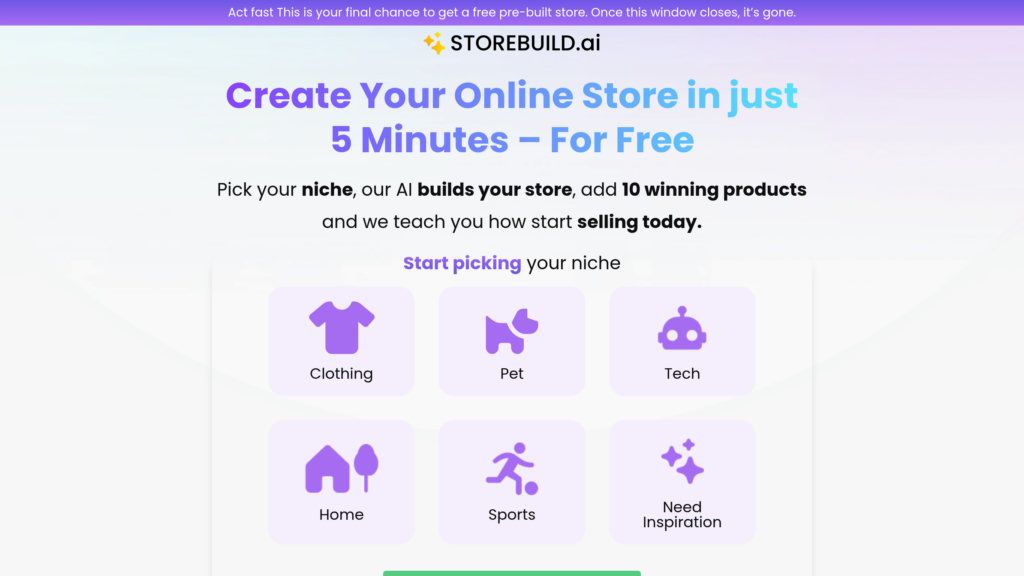 Storebuild.ai — это платформа, использующая ИИ для полной автоматизации создания и запуска интернет-магазинов на Shopify. Система самостоятельно анализирует тренды, подбирает прибыльные ниши и востребованные товары для дропшиппинга. Затем ИИ генерирует дизайн магазина, включая профессиональное оформление, необходимые страницы и SEO-оптимизированные описания товаров, полностью исключая необходимость в навыках программирования или дизайна. Основная ценность заключается в решении проблемы высокого порога входа в e-commerce для новичков и предпринимателей, стремящихся к пассивному доходу. Сервис устраняет необходимость ручной работы над каждым этапом: от выбора ниши до настройки рекламных кампаний и обработки заказов. Это позволяет запустить готовый к продажам магазин за считанные минуты, минимизируя временные и финансовые затраты на старте.