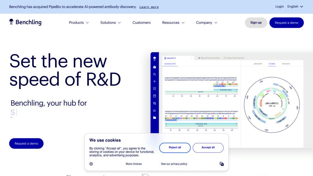 Benchling представляет собой единую облачную среду, объединяющую все аспекты исследований и разработок в науках о жизни. Платформа централизует экспериментальные данные, биологические объекты, рабочие процессы и результаты, обеспечивая полную прослеживаемость и воспроизводимость. Интегрируя проектирование молекул, управление образцами и автоматизацию процессов, Benchling позволяет биотехнологическим и фармацевтическим командам значительно ускорить инновации, улучшить координацию и повысить достоверность данных. Ключевая проблема, которую решает Benchling, — фрагментация данных и разрозненность процессов в R&D. Традиционные подходы часто приводят к потере информации, ошибкам при ручном переносе данных и замедлению циклов разработки. Benchling устраняет эти барьеры, предоставляя единый источник правды для всех научных данных и рабочих процессов, что критически важно для соблюдения регуляторных норм и эффективного масштабирования инноваций.