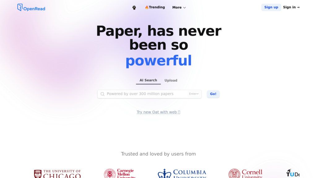 OpenRead Academy — это платформа на базе ИИ, оптимизирующая академические исследования. Ее ядро — технология Paper Espresso, которая мгновенно создает краткие выжимки из научных статей, выделяя ключевые методы, данные и выводы для быстрой оценки релевантности. В сочетании с ИИ-ассистентом Oat, который отвечает на вопросы по содержанию статей с указанием источников, платформа значительно ускоряет процесс ознакомления с литературой. Платформа решает проблему перегрузки информацией и нехватки времени у исследователей. Вместо многочасового чтения десятков статей, пользователи получают доступ к их сути и могут оперативно находить ответы на конкретные вопросы. Это особенно ценно при написании обзоров литературы, подготовке к конференциям и при работе над диссертациями, где требуется глубокое понимание большого объема научных публикаций.