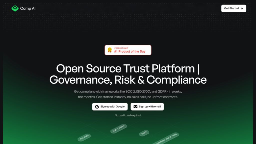 Comp AI автоматизирует сбор доказательств, управление рисками и соблюдение политик для SOC 2, ISO 27001, GDPR. Открытый исходный код, интеграции.