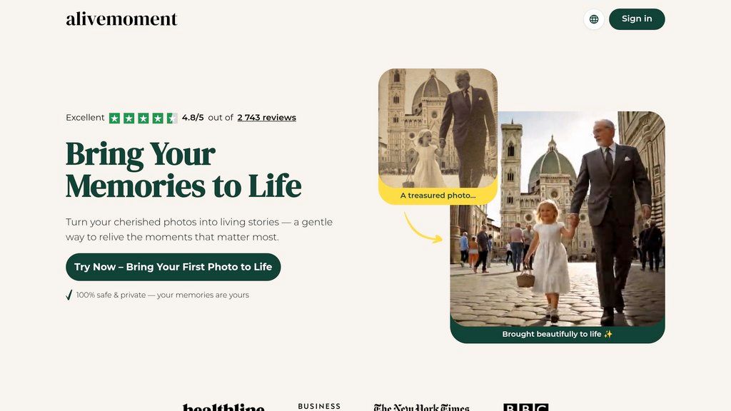 Alivemoment — это онлайн-платформа, которая позволяет пользователям оживлять статичные фотографии, добавляя им естественное и реалистичное движение. Вы загружаете снимок, выбираете один из доступных стилей анимации, и система генерирует короткий видеоклип, который передает тонкие мимические движения и жесты. Этот инструмент решает задачу сохранения эмоциональной ценности воспоминаний, придавая фотографиям новую жизнь без необходимости обладать техническими навыками. Пользователи могут легко добавить тепло и глубину своим treasured моментам, создавая динамичные версии любимых снимков.