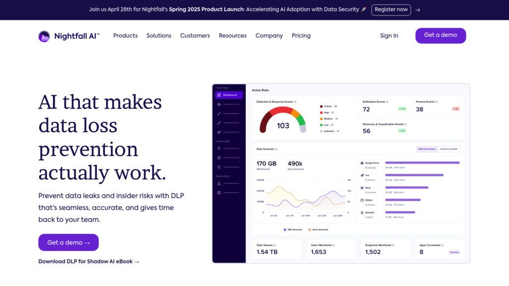 Nightfall AI предотвращает утечки конфиденциальных данных (PII, PHI, PCI, секреты) в SaaS, email, AI-инструментах. Защита для бизнеса.
