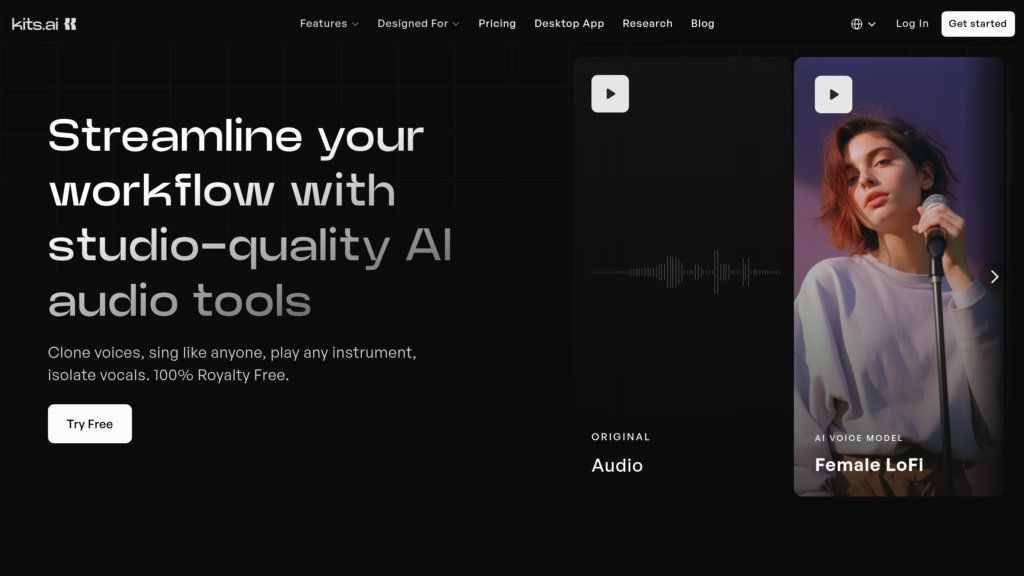 Kits AI – платформа для музыкантов и продюсеров. Клонирование голоса, удаление вокала, AI-мастеринг для создания треков.