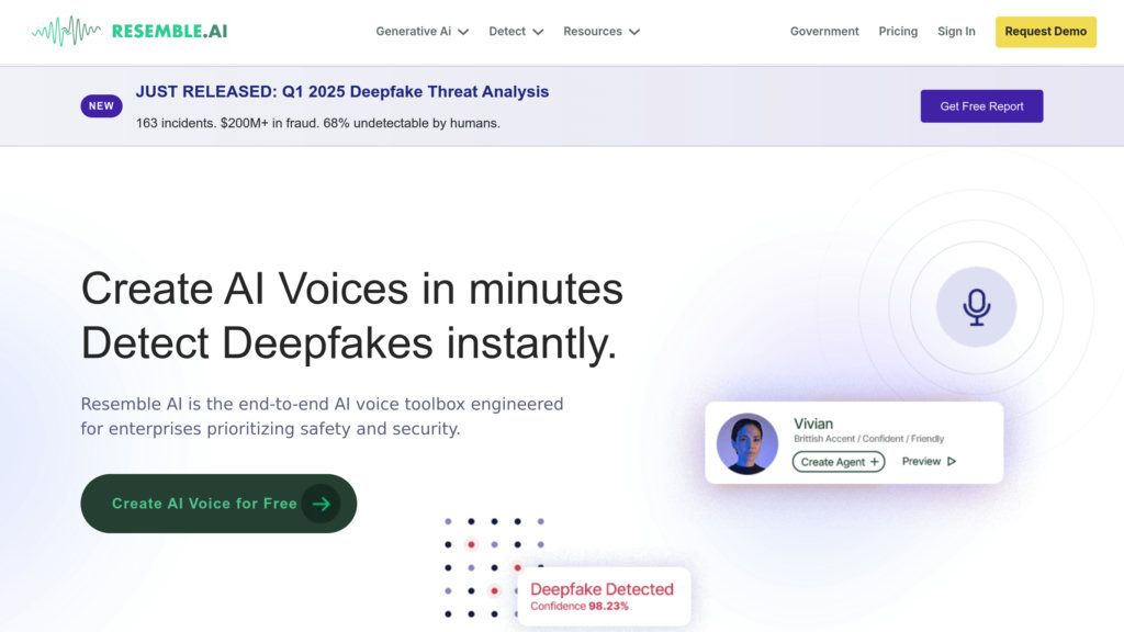 Resemble AI — это продвинутая платформа для синтеза речи, позволяющая создавать высококачественные, реалистичные и кастомизированные AI-голоса. Используя как текст, так и короткие аудиофрагменты, инструмент способен быстро клонировать существующие голоса или генерировать новые. Особое внимание уделяется контролю эмоциональной окраски и тональности, что позволяет добиться естественного звучания для любого контента. Платформа решает задачу создания уникального аудио-контента без привлечения дикторов. Она подходит для брендов, стремящихся к единообразию голоса в коммуникациях, для создателей игр и развлекательного контента, нуждающихся в разнообразных персонажах, а также для образовательных платформ, требующих четкого и выразительного озвучивания материалов. Безопасность обеспечивается технологиями обнаружения дипфейков и аудио-водяными знаками.