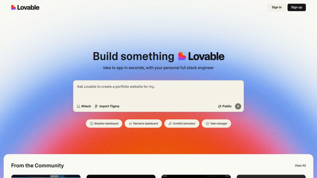 Lovable.dev — это платформа, которая позволяет создавать полноценные веб-приложения, просто описывая их идею на естественном языке. ИИ-движок автоматически генерирует фронтенд на React с использованием Tailwind CSS и Vite, интегрирует бэкенд-сервисы, такие как Supabase для баз данных и аутентификации, и синхронизируется с GitHub. Это значительно ускоряет разработку, устраняя необходимость в ручном написании кода. Платформа решает проблему долгого и трудоемкого процесса создания веб-приложений, особенно для стартапов и предпринимателей с ограниченными техническими ресурсами. Она делает процесс доступным даже для пользователей без навыков программирования, предоставляя мгновенные предпросмотры, интуитивные режимы редактирования и деплой в один клик.