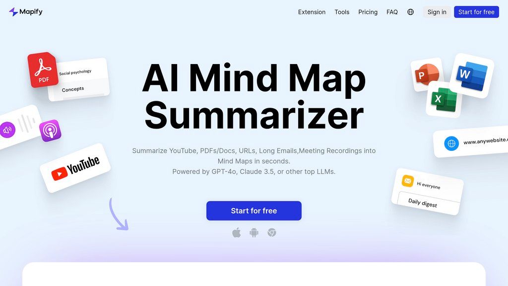 Преобразует ключевые слова, вопросы или целые документы в структурированные многоуровневые ментальные карты с помощью ИИ GPT-4.