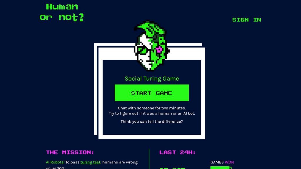 Human or Not — это интерактивная игра-тест Тьюринга, позволяющая испытать вашу способность распознавать собеседника: человек или искусственный интеллект. Сердце платформы — анонимные двухминутные чат-сессии, где вы ведете диалог с случайным партнером. По завершении диалога вам предстоит сделать выбор: был ли ваш собеседник человеком или продвинутым ИИ. Проект решает задачу демонстрации текущего уровня развития разговорных ИИ и их способности имитировать человеческое общение. Он предлагает практический опыт, который помогает пользователям лучше понять возможности и ограничения современных AI-моделей, сочетая развлечение с образовательной ценностью.