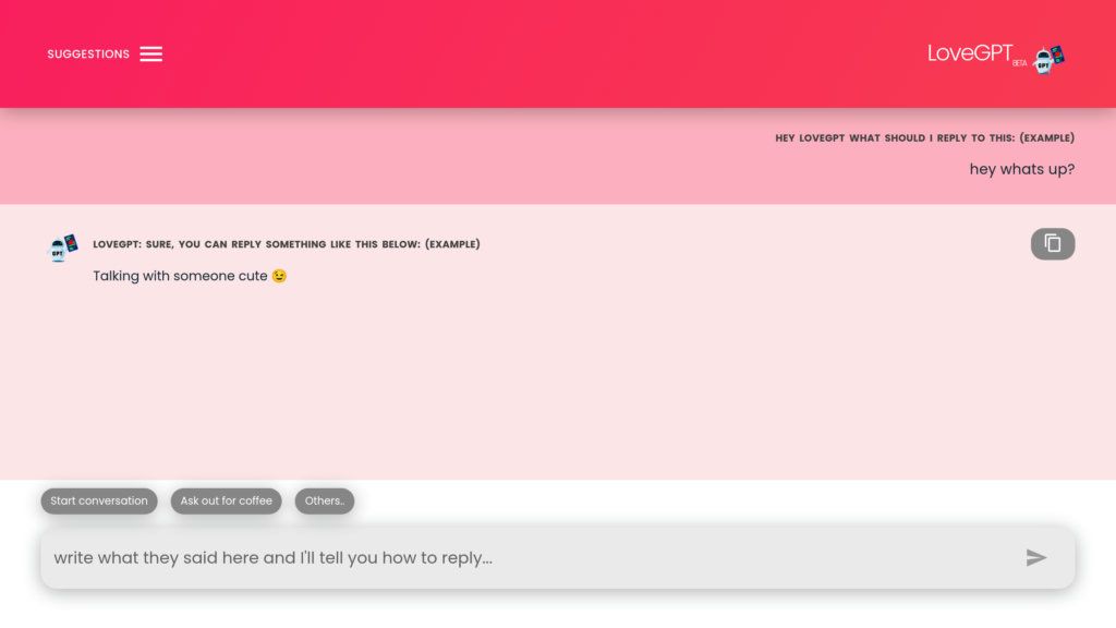LoveGPT screenshot