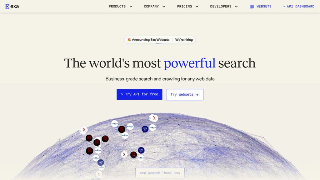 Exa AI — нейросетевая поисковая платформа. Предоставляет LLM актуальную информацию из веба в реальном времени, улучшает точность ответов и снижает галлюцинации.