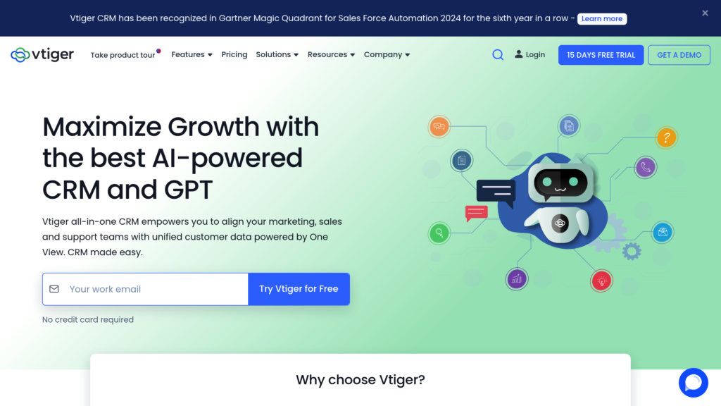 Vtiger CRM объединяет продажи, маркетинг и поддержку. Автоматизируйте процессы, получайте AI-инсайты и улучшайте взаимодействие с клиентами.