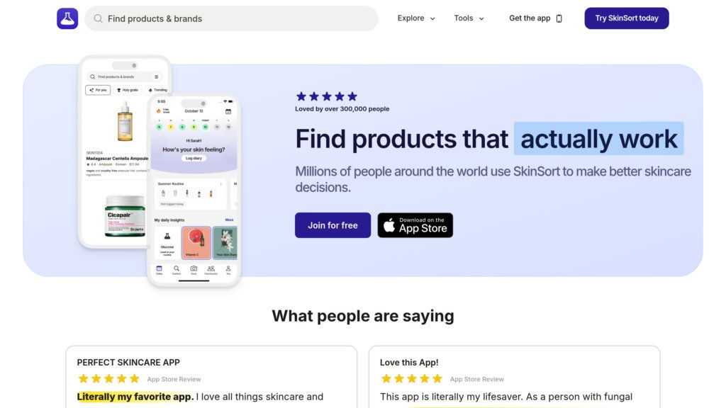 SkinSort анализирует состав косметики для вашего типа кожи, помогает найти аналоги и отслеживать уход. Независимая информация.