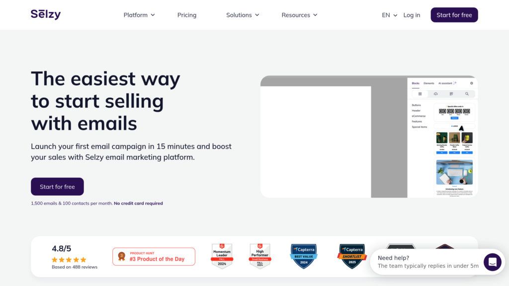 Selzy — это комплексное решение для email-маркетинга, которое использует искусственный интеллект для упрощения и ускорения создания эффективных рассылок. Его ключевая особенность — ИИ-помощник, способный генерировать заголовки, прехедеры и тексты писем без необходимости написания кода. В основе платформы лежит интуитивно понятный drag-and-drop редактор с более чем 140 готовыми шаблонами, позволяющий быстро создавать адаптивные дизайны. Сервис решает задачу низких конверсий и рутинной работы с рассылками. Благодаря ИИ-генерации контента, продвинутой сегментации аудитории (по 70+ критериям) и гибким настройкам автоматизации (приветственные серии, брошенные корзины, реактивация), Selzy помогает бизнесу выстраивать персонализированное общение с клиентами в масштабе, повышая вовлеченность и продажи при минимальных временных затратах.
