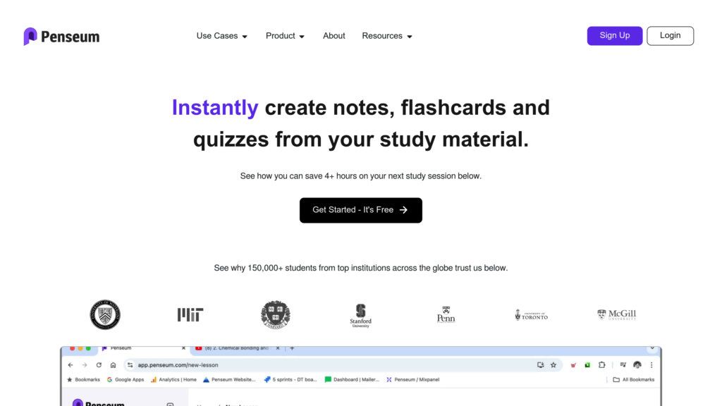 Penseum — это интеллектуальный инструмент, который преобразует любые учебные материалы — будь то PDF-документы, видеолекции, презентации или ваши собственные заметки — в персонализированные форматы для более эффективного усвоения знаний. Используя передовые алгоритмы, платформа автоматически генерирует интерактивные флэш-карточки, проверочные тесты, детальные конспекты и пошаговые решения сложных задач. Этот сервис решает проблему перегруженности информацией и нехватки времени на качественную подготовку к занятиям или экзаменам. Он помогает студентам глубже понимать материал, а преподавателям — создавать и распространять учебные ресурсы, экономя часы рутинной работы и повышая вовлеченность учащихся.