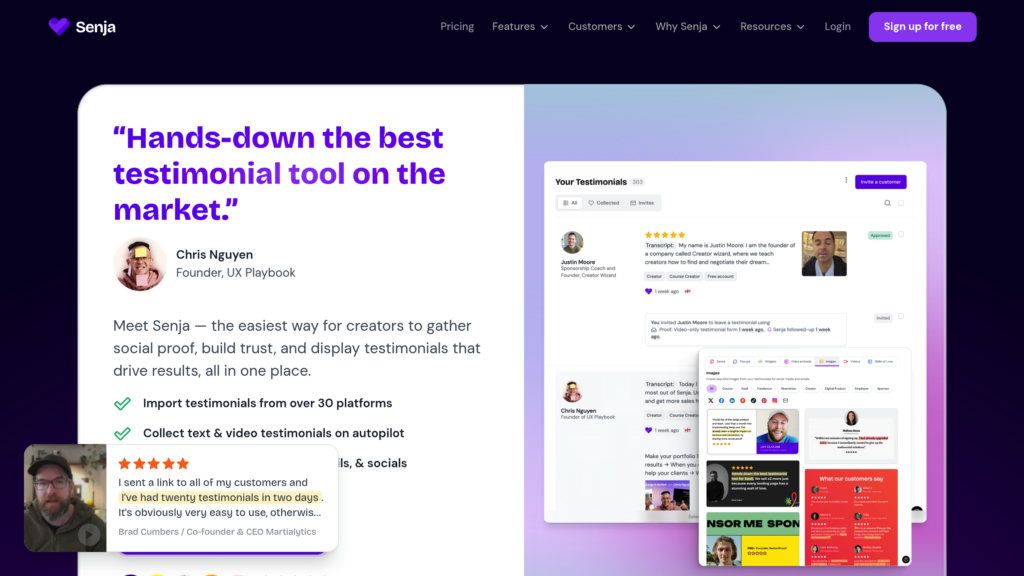 Senja автоматизирует сбор, управление и демонстрацию отзывов клиентов. Идеально для SaaS, маркетологов и создателей контента для повышения доверия.