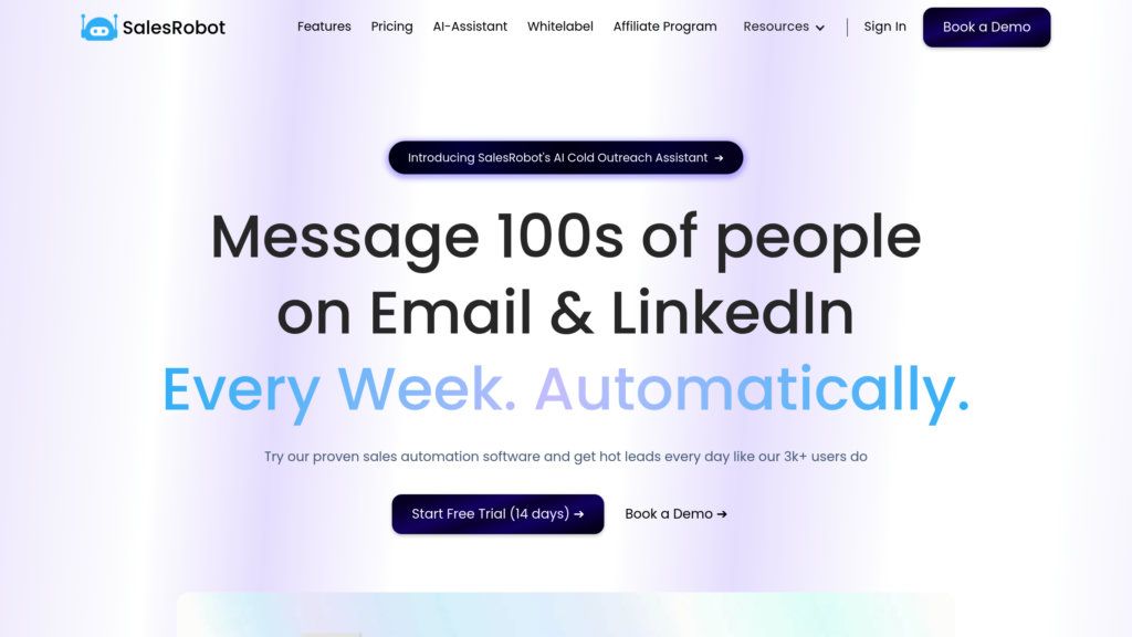 SalesRobot автоматизирует многоканальный аутсорсинг (LinkedIn, Email), персонализирует сообщения и назначает встречи с помощью ИИ. Для B2B-продаж.