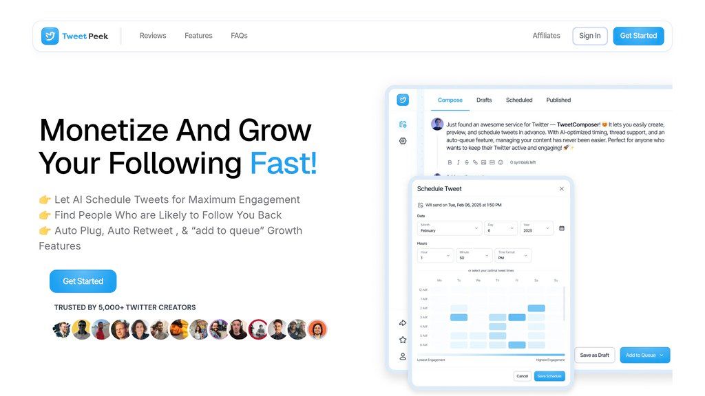 TweetPeek AI – платформа для органического роста в Twitter. Умная автоматизация подписок и аналитика профилей для привлечения целевой аудитории.