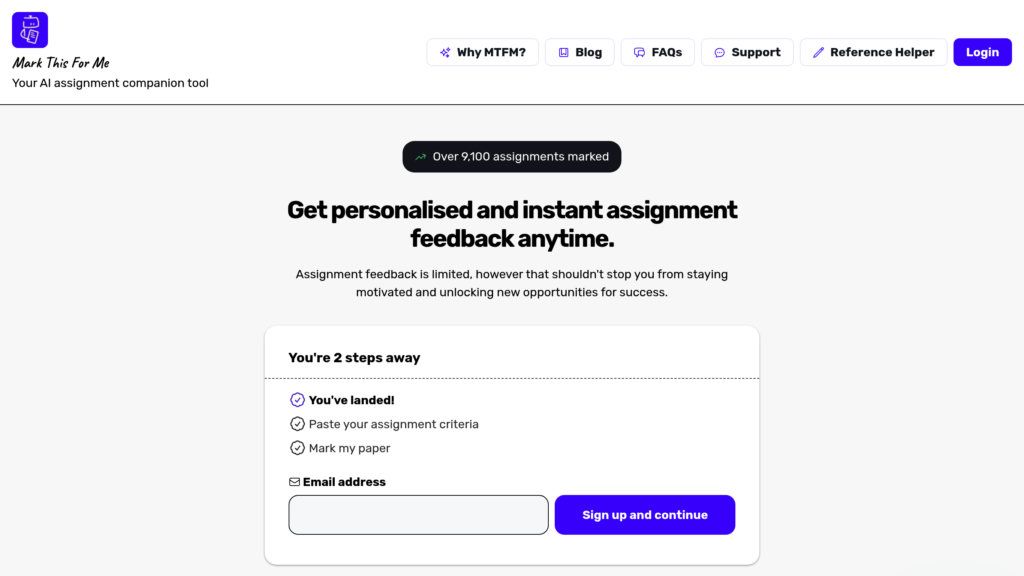 Mark This For Me — это ИИ-платформа, использующая передовые модели OpenAI (GPT-3, GPT-4) для предоставления студентам мгновенной, персонализированной обратной связи по их учебным работам. Система анализирует текст, опираясь на заданные критерии оценки, выявляя сильные стороны и зоны для роста. Обратная связь фокусируется на ясности изложения, логике структуры, убедительности аргументации, грамматике и корректности использования источников, направляя студента к самостоятельному улучшению без предоставления прямых ответов. Инструмент решает проблему нехватки своевременной и качественной обратной связи по учебным заданиям. Студенты часто сталкиваются с задержками в получении комментариев от преподавателей или отсутствием детализации в оценке. Mark This For Me обеспечивает доступ к глубокому анализу работы в любое время, помогая студентам лучше понимать свои ошибки, развивать критическое мышление и повышать академическую успеваемость, соблюдая при этом принципы академической честности.