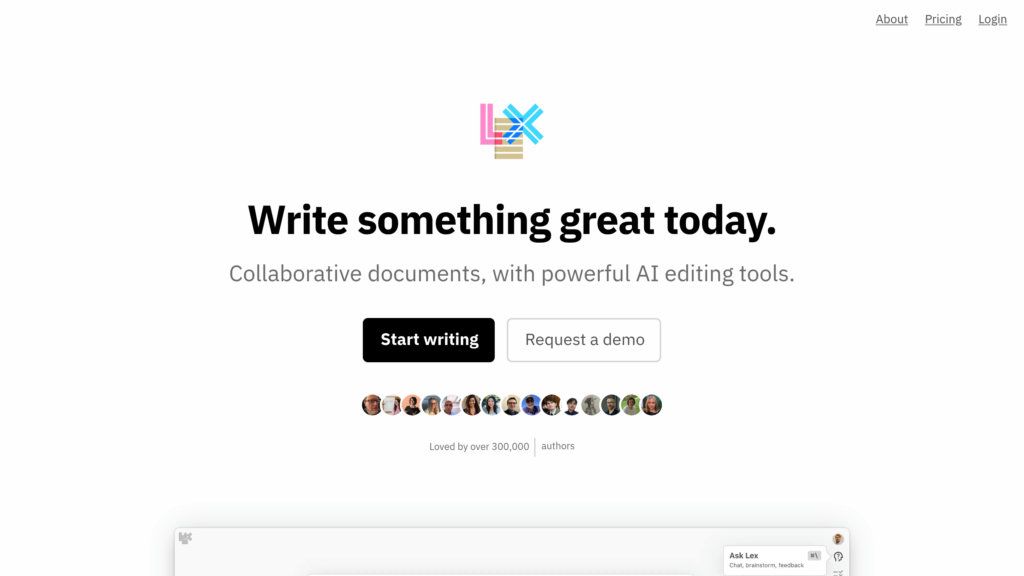 Lex — платформа для письма с ИИ: генерация текстов, редактура, совместная работа. Улучшите качество и скорость написания документов.
