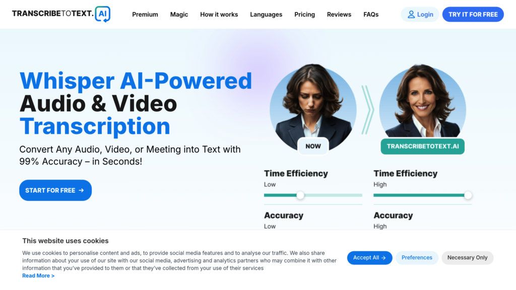 TranscribeToText.AI использует передовую модель OpenAI Whisper для высокоточной преобразования аудио и видео в текст. Система поддерживает более 117 языков, что делает ее универсальным инструментом для глобальной аудитории. Алгоритмы сервиса способны обрабатывать файлы из различных источников, включая прямые ссылки на YouTube, файлы из Google Drive и Dropbox, а также записи живых встреч в Zoom, Google Meet и Microsoft Teams. Основная задача сервиса — избавить пользователей от рутинной работы по расшифровке аудио и видеоматериалов. Он решает проблему временных затрат и ошибок, присущих ручному транскрибированию, обеспечивая скорость и надежность. Идентификация говорящих и поддержка множества языков позволяют эффективно работать с любым контентом, будь то интервью, лекции, вебинары или подкасты.