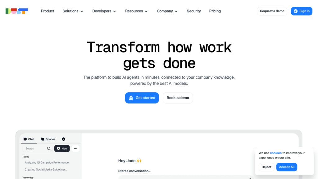 Создавайте и разворачивайте ИИ-агентов для бизнеса за минуты без программирования. Интеграция с данными, мультимодельность, безопасность.