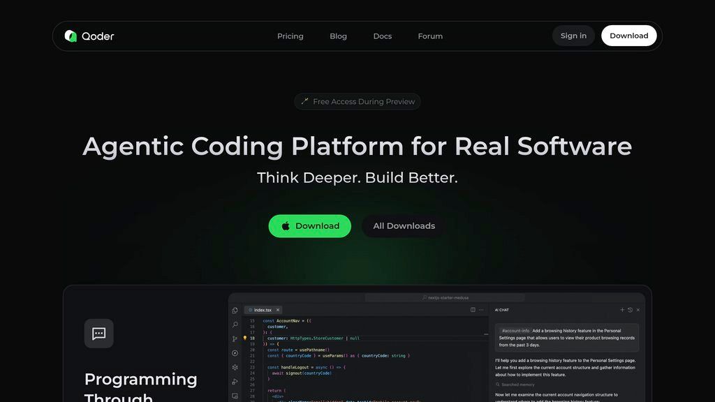 Qoder — это платформа, позволяющая ИИ-агентам самостоятельно выполнять полный цикл разработки программного обеспечения: от планирования и написания кода до тестирования и доставки готового продукта. Система анализирует весь кодбазу проекта, понимает его архитектуру, паттерны проектирования и логику, что позволяет ИИ агентам принимать обоснованные решения при разработке и рефакторинге. Платформа решает проблему нехватки разработчиков и ускоряет вывод продуктов на рынок. Qoder снижает нагрузку на команду, автоматизируя рутинные и сложные задачи кодирования, повышая при этом качество и консистентность кода благодаря адаптивному обучению стилю программирования и выбору оптимальной ИИ-модели для каждой задачи.
