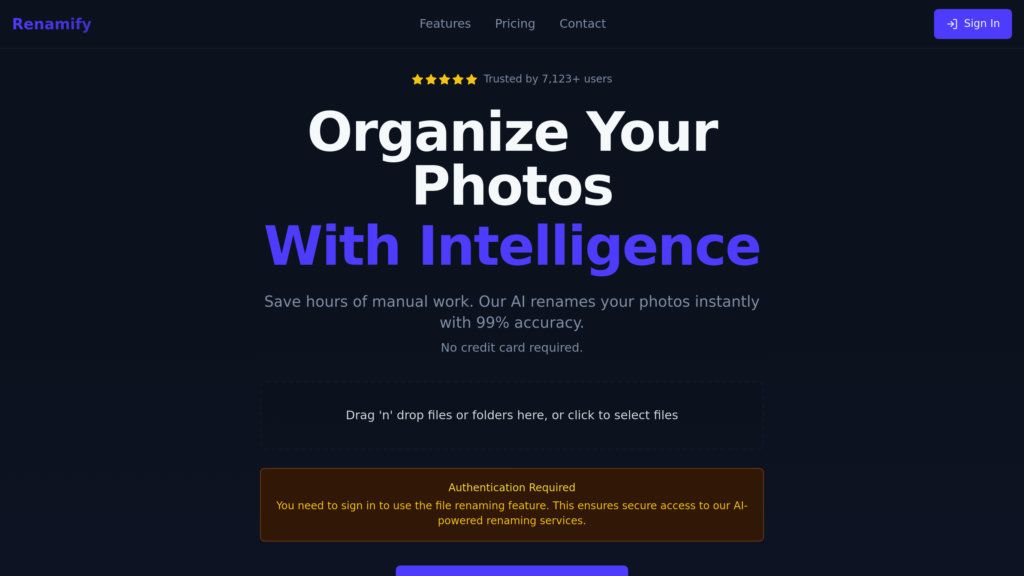Renamify — ИИ-ассистент для автоматического переименования и организации фото и файлов по их содержанию. Обеспечивает конфиденциальность и кроссплатформенный доступ.