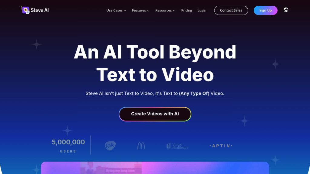 Создавайте видео из текста, скриптов или аудио. Steve AI конвертирует ваш контент в анимированные или реальные видео с помощью ИИ. Идеально для маркетинга и обучения.