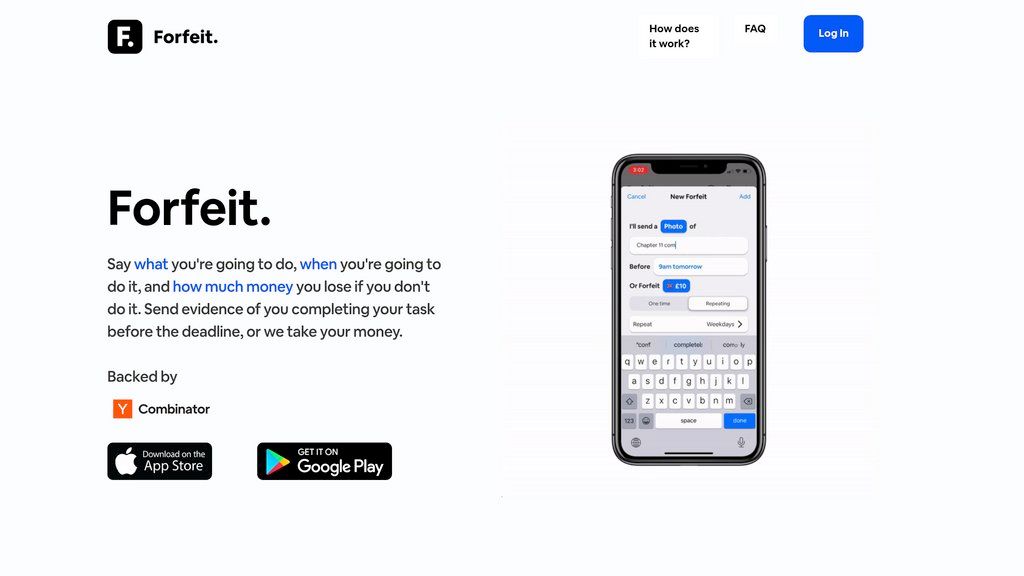 Forfeit — это инструмент, который превращает постановку целей в реальные действия, используя силу финансовой ответственности. Вы устанавливаете конкретные задачи, сроки и сумму денег, которую готовы потерять в случае неудачи. Это денежное обязательство, подкрепленное доказательствами, становится мощным стимулом для достижения результата. Система верификации включает загрузку фото, видео, GPS-отчеты или автоматическую синхронизацию с популярными фитнес- и продуктивными приложениями. Приложение решает проблему прокрастинации и отсутствия последовательности в достижении личных и профессиональных целей. Вместо пустых обещаний себе, Forfeit заставляет вас действовать, поскольку на кону стоят реальные деньги. Это особенно эффективно для формирования новых привычек, отказа от старых или выполнения задач, требующих строгой дисциплины, где внешняя мотивация играет ключевую роль.