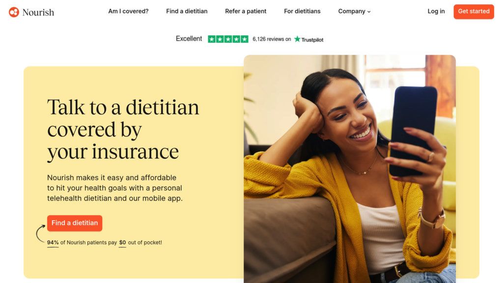 Nourish — сервис телемедицины для получения персонализированных планов питания от зарегистрированных диетологов. Доступно по страховке.