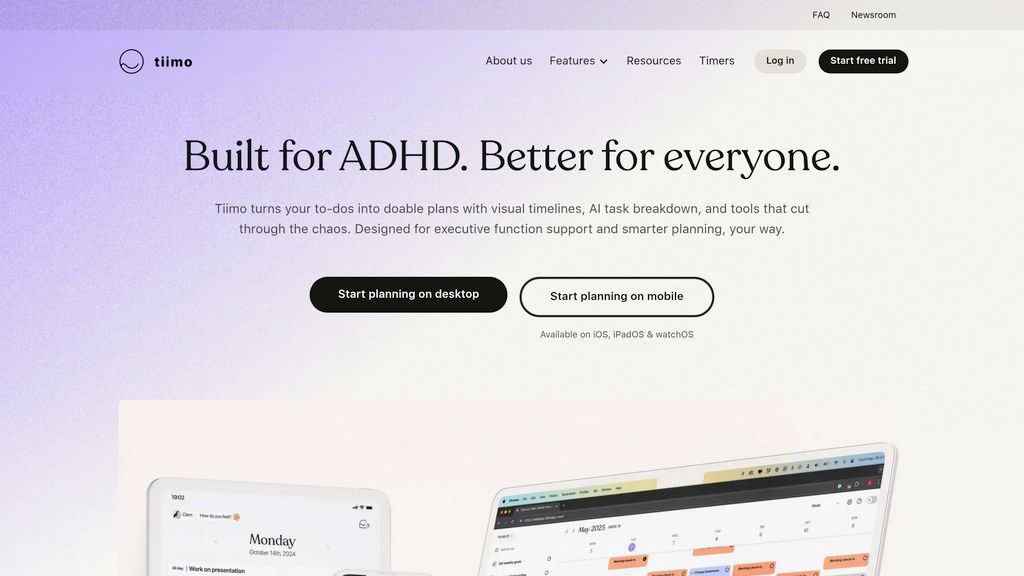 Tiimo — это специализированное приложение для визуального планирования, разработанное для людей с СДВГ, аутизмом и другими нейроотличными состояниями. Оно преобразует абстрактное понятие времени и расписания в интуитивно понятную, цветокодированную визуальную систему. Пользователи могут легко создавать и управлять своими ежедневными рутинами и задачами, разбивая их на управляемые шаги с помощью перетаскивания элементов и визуальных подсказок. Основная задача Tiimo — снизить уровень перегрузки и улучшить исполнительные функции, которые часто бывают затруднены при нейроотличиях. Вместо того чтобы бороться с традиционными методами планирования, которые могут вызывать стресс и путаницу, Tiimo предлагает структуру, которая работает в гармонии с уникальными когнитивными особенностями пользователя, делая управление временем более доступным и менее фрустрирующим.