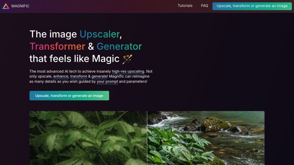 Magnific AI использует передовые нейронные сети для кардинального улучшения качества изображений. Алгоритмы глубокого обучения анализируют исходник и достраивают недостающие детали, увеличивая разрешение и добавляя фотореалистичность. Пользователи могут управлять процессом, задавая желаемый уровень детализации и креативности с помощью ползунка. Этот инструмент решает проблему низкого качества исходных материалов, будь то старые фотографии, сжатые изображения или эскизы. Он позволяет получить высокодетализированные, качественные версии изображений, пригодные для профессионального использования, без необходимости сложных ручных доработок.