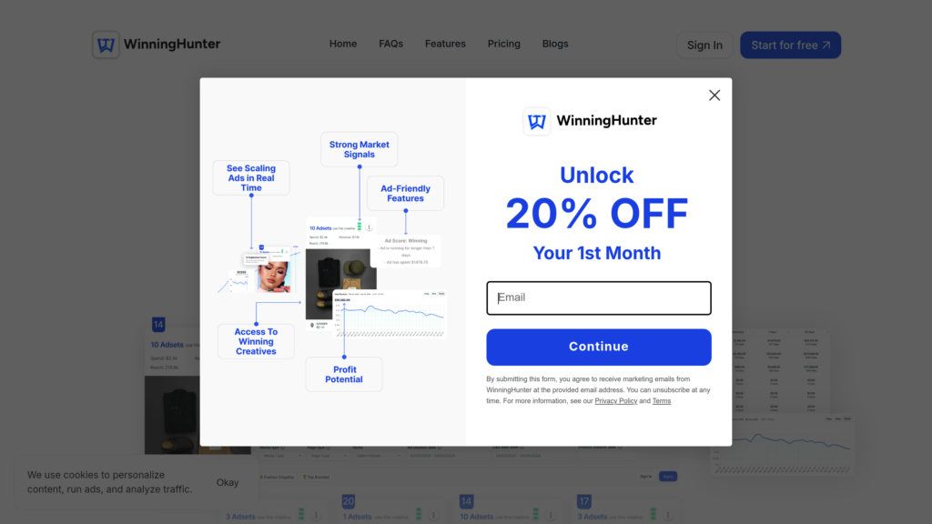 WinningHunter помогает дропшипперам находить трендовые товары и прибыльные ниши с помощью анализа рекламы Facebook/TikTok, отслеживания продаж и ИИ.