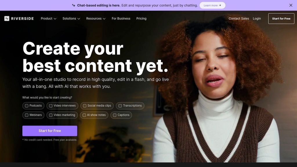 Riverside — это комплексная платформа для создания аудио- и видеоконтента, использующая технологию локальной записи. Каждый участник записывает аудио и видео непосредственно на своем устройстве с качеством до 4K (видео) и без сжатия (аудио). Это гарантирует профессиональное качество звука и изображения, исключая проблемы, связанные с нестабильным интернет-соединением. Платформа решает главную боль создателей контента – потерю качества при удаленной записи. Riverside объединяет запись, редактирование и публикацию в едином рабочем процессе. Интегрированные AI-инструменты, такие как автоматические транскрипции и помощь в монтаже, значительно ускоряют процесс постпродакшена, позволяя сосредоточиться на создании ценного контента.