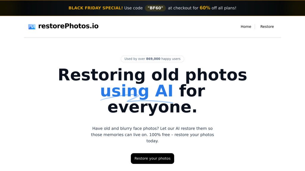 RestorePhotos.io использует передовые алгоритмы искусственного интеллекта для оживления старых фотографий, особенно сфокусировавшись на лицах. Платформа автоматически анализирует изображение, повышает детализацию, убирает размытие и восстанавливает яркость, превращая выцветшие и поврежденные снимки в четкие и насыщенные изображения буквально за секунды. Главная цель сервиса – сделать процесс реставрации фотографий доступным каждому, независимо от навыков. Больше не нужно тратить время на изучение сложных программ или поиск специалистов. RestorePhotos.io решает проблему утери ценных воспоминаний из-за деградации фотоматериалов, позволяя быстро и легко вернуть им первозданный вид.
